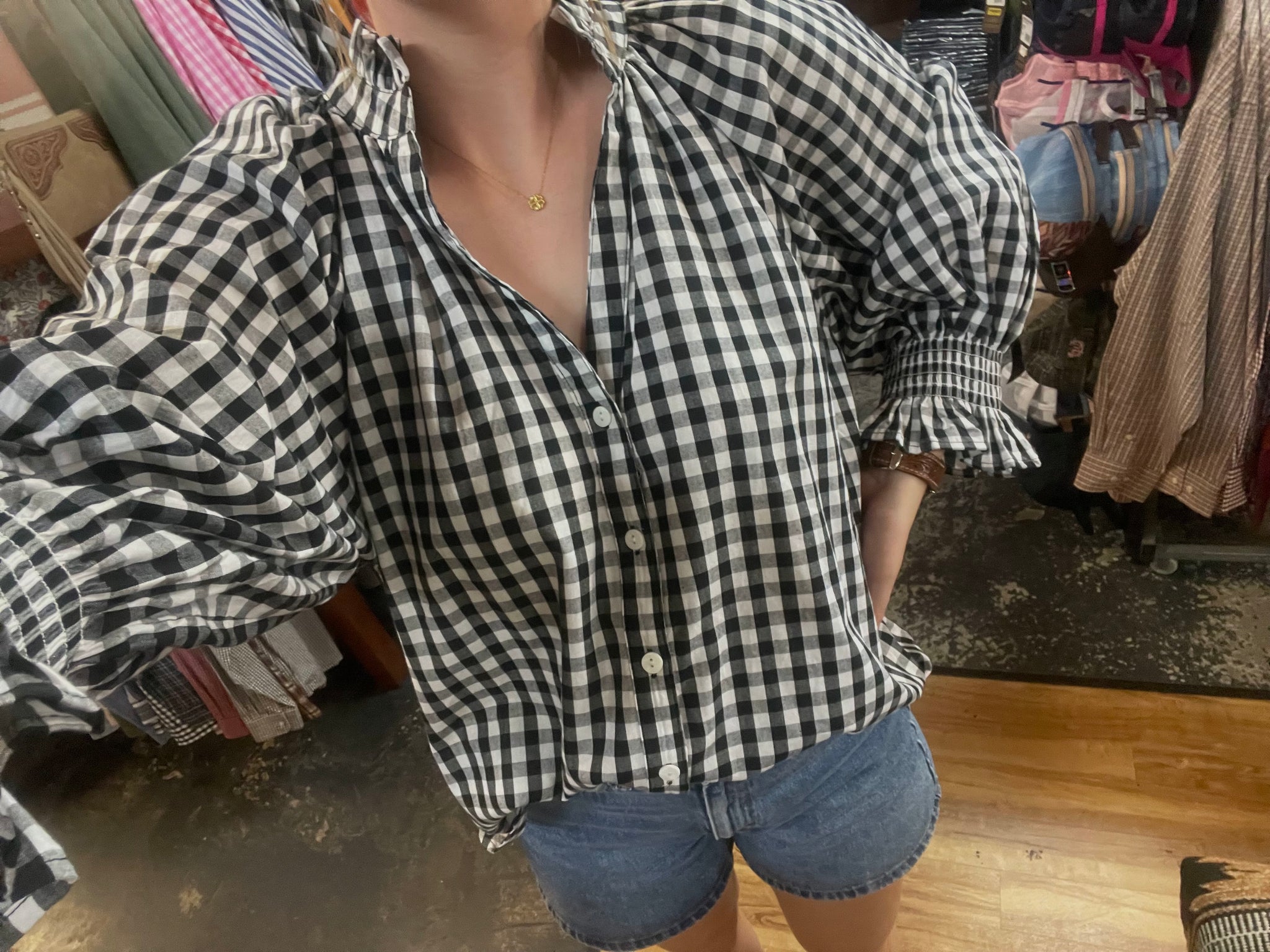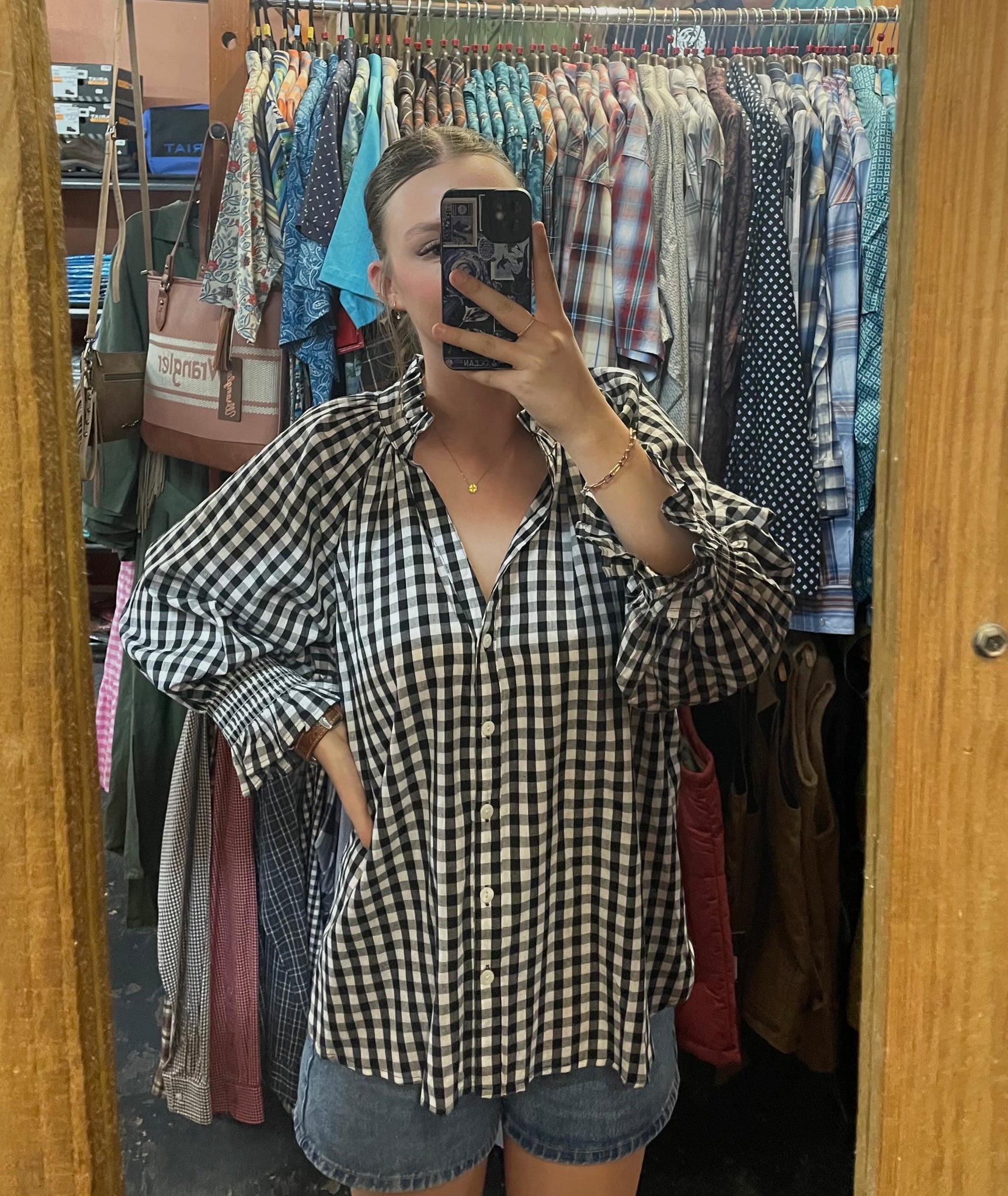 KL882 Kiik Luxe Ladies L/S Black/White Small Check